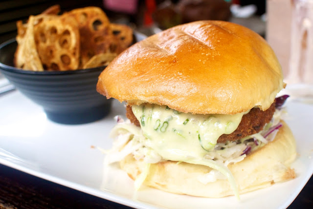 An amazing Asian-inspired burger with deep fried lotus root chips serving as the most appropriate side instead of fries. This was DT's meal but I couldn't resist eating the chips, because they were super crunchy and addictive. The burger consisted of two toasted golden brioche buns sandwiching a shrimp katsu covered in a generous helping of wasabi mayo and a bed of Asian coleslaw at the bottom. The shrimp katsu wasn't greasy in any way, the insides were deliciously soft and moist yet still had a firm texture and the deep fried panko still retained its crispiness despite the heaping of mayo which had just enough wasabi in it.
